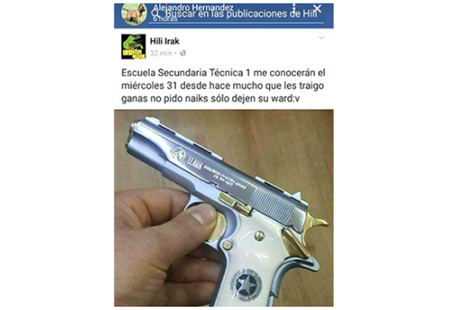 El usuario Hili Irak publicó en su cuenta de Facebook el siguiente mensaje: “Escuela Secundaria Técnica Uno, me conocerán el miércoles 31, desde hace mucho que les traigo ganas. No pido ‘naiks’, sólo dejen su ‘ward’”.