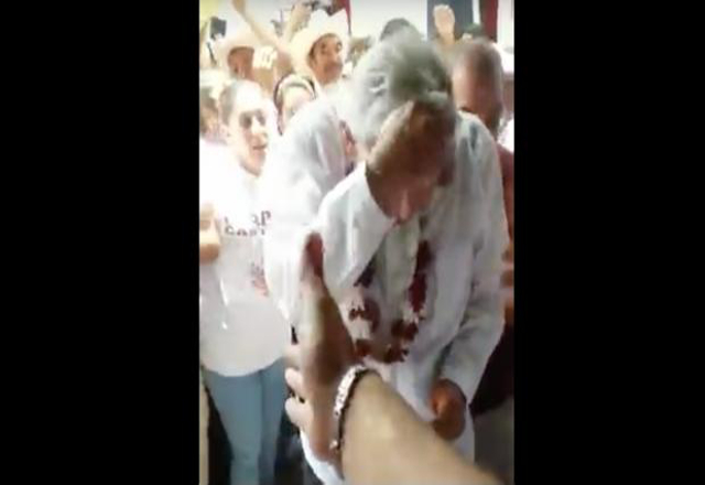 25/05/17.- El líder nacional del Movimiento de Regeneración Nacional, Andrés Manuel López Obrador, fue agredido la tarde de este jueves al finalizar un mitin en el municipio de Huatusco, Veracruz.