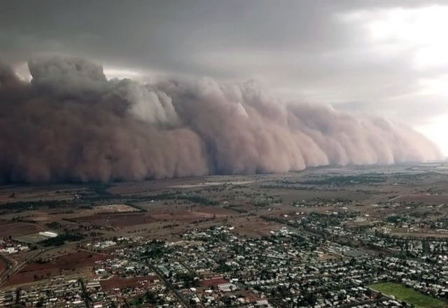 Imágenes impresiontantes tomadas durante el fin de semana en el occidente Nueva Gales del Sur muestran una impresionante tormenta de polvo que se dirige hacia ciudades del interior. Habitantes de la zona señalaban que se había vuelto de noche en medio del día.