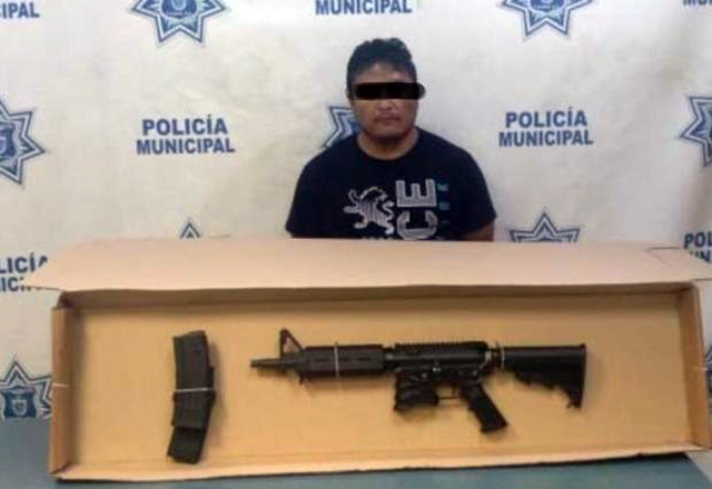 El sujeto viajaba en una camioneta Nissan con placas de Estados Unidos y fue encontrado en posesión de un rifle calibre .223 y 58 cartuchos útiles del mismo calibre.