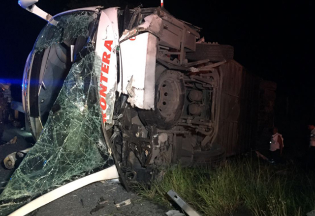 4/09/2017 - Tamaulipas.- Está mañana de lunes se registró un choque de un autobús contra trailer en la carretera Victoria-Monterrey km 79 a la altura del poblado El Tomaseño con un saldo de 16 heridos 2 de ellos de gravedad, entre ellos una mujer que resultó prensada.