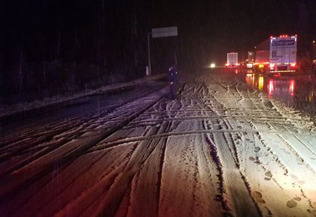 8/12/2017 -Tamaulipas.- La Policía Federal anunció el cierre de circulación por nevada del kilómetro 64+000 al 081+000 de la Autopista Monterrey-Nuevo Laredo, tramo Entronque Ciénega de Flores-La Gloria, y del kilómetro 80+000 al 55+000 carretera federal de Monterrey-Nuevo Laredo, por la presencia de nieve sobre la carpeta asfáltica. El anuncio se dio en los primeros minutos de este viernes.