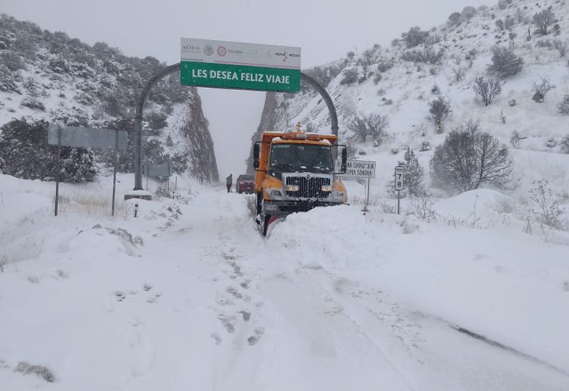 29/12/18.- La Policía Federal informó que por la nevada en la zona cerró la carretera federal 02, en el tramo de Agua Prieta-Janos, por lo que recomienda a la población tomar precauciones.