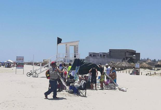 El director de Protección Civil, Mario Espinosa Veyro, explicó que se instaló bandera negra dese las 2 de la tarde para evitar que los bañistas ingresen, pues el viento es muy fuerte y el oleaje también.