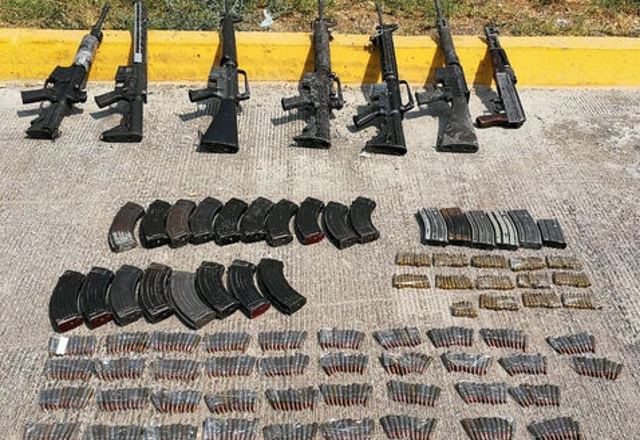 En el lugar fueron detenidos Erick G., Luis A., Luis R., Roberto A., Juan R., Luis H. y un menor de edad y se les decomisaron siete fusiles de distintos calibres, así como 25 cargadores y 600 municiones.