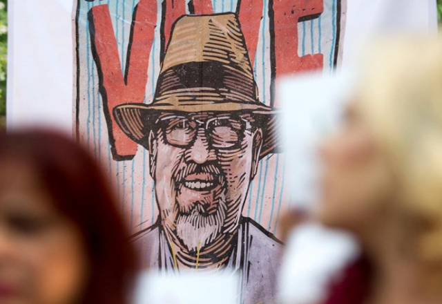 Así, con su familia al frente rodeada de amigos y compañeros de trabajo, dio inicio la jornada de protesta por la muerte del periodista Javier Valdez. Inauguraron una muestra gráfica que recopila un año de protestas en periódicos y revistas.