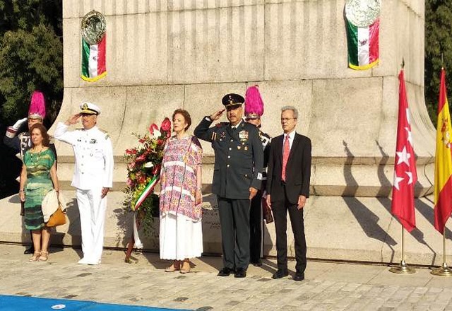 En este parque se ubica una estatua de Miguel Hidalgo, donde la diplomática depositó una ofrenda de flores, le acompañaron Agregados Militares de las Secretarías de la Defensa Nacional y Marina Armada de México, personal de la Embajada, de todos los niveles y algunos mexicanos residentes en Madrid.