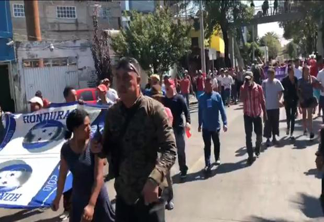 08/11/18.- Un grupo de migrantes que se encuentra en el campamento de Ciudad Deportiva, encabezados por Miltón Benítez, se dirigen a la sede de las Naciones Unidas para protestar y solicitar autobuses a fin de continuar su viaje hacia Estados Unidos.