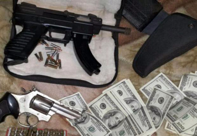 Al revisarlo, encontraron en su interior siete armas calibre 7.62 X 39 milímetros, 53 cargadores y mil 409 cartuchos del mismo calibre, un arma y 180 cartuchos calibre .38 especial, dos armas, un cargador y 68 tiros calibre 32 milímetros, además de 22 mil 325 dólares, un chaleco con dos placas antibalas y cuatro fornituras.