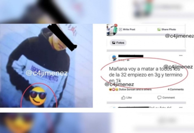La Fiscalía General de Justicia de la Ciudad de México (FGJ CDMX) y la Policía de Investigación (PDI) abrieron una indagatoria luego de que un adolescente de 13 años de edad, estudiante de secundaria, publicó en su cuenta de Facebook una fotografía en la que aparece con una pistola y la amenaza de una matanza en su escuela secundaria.