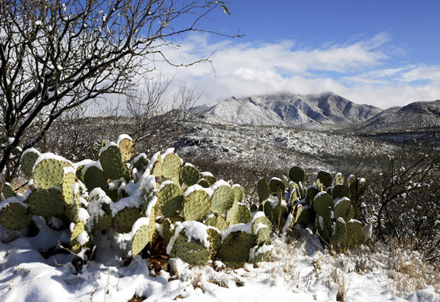 La nieve espolvoreó los cactus y montañas del sur de Arizona y cubrió el norte del Gran Cañón.