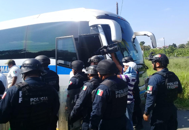 09/11/18.- Elementos de la Policía Federal, en colaboración con agentes del Instituto Nacional de Migración (INM), frenaron el paso de alrededor de 250 ciudadanos centroamericanos que integran la quinta Caravana Migrante en el tramo Suchiate-Tapachula.