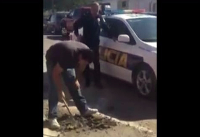 La autora del video explicó que las personas que arreglan el piso de su hogar se ofrecieron a ayudar a tapar los baches, pero que en cuanto la policía los vio acudió a sancionarlos, argumentando que deben esperar a que dicho trabajo lo haga el ayuntamiento.