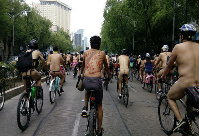 09/06/18.- Un grupo de personas se concentraron para realizar la "XIII Rodada Mundial Ciclista al Desnudo” denominada “¡Desnudos ante el tráfico!”para protestar y crear conciencia sobre la dependencia de los combustibles fósiles y el uso indiscriminado del automóvil que es productor de contaminación y daños ecológicos.