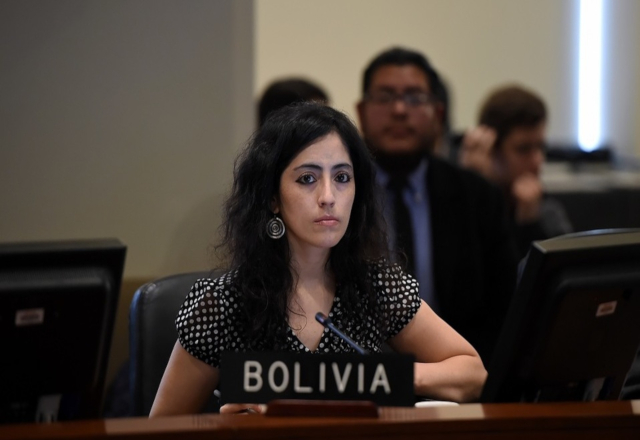 Hoy la OEA celebró una reunión extraordinaria de su Consejo Permanente para evaluar la situación en Bolivia y el sillón destinado al país andino estuvo ocupado por Tania Paz, una de las representantes alternas de la misión boliviana y que leyó un comunicado del canciller de Bolivia, Diego Pary.
