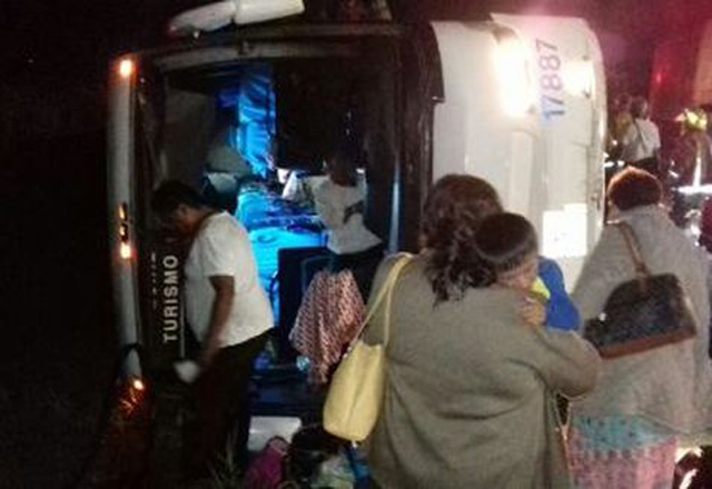 Vuelca autobús con 40 pasajeros
