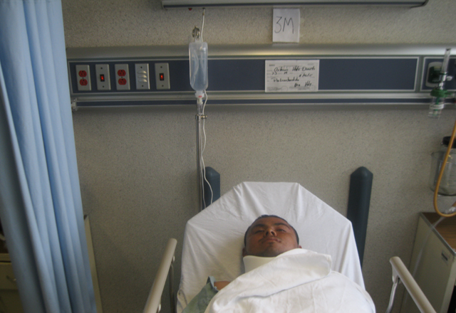 Orlando Hernández Ugarte, de 23 años de edad, radicado en las calles Sexta y Juárez número 535, con varias heridas en la cabeza, y golpes en el cuerpo, ingresó a urgencias del Hospital General "Dr. Alfredo Pumarejo".