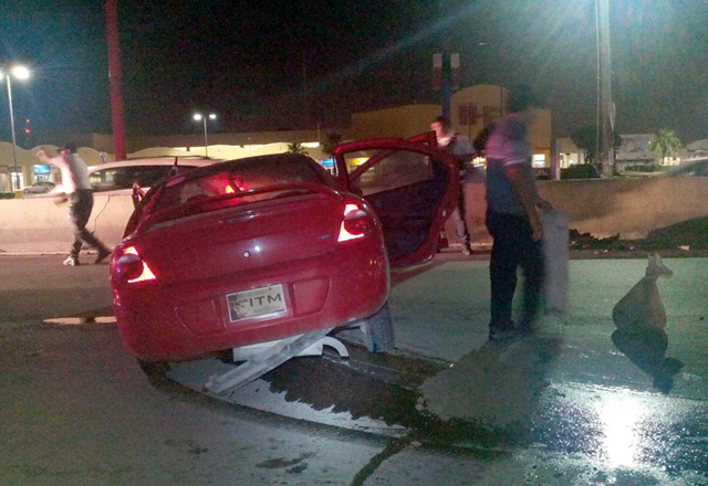 7/06/2016 - Un acelerado conductor en horas de la madrugada chocó y causó daños a tres de los muros que están en el camellón y dividen los carriles de la avenida Pedro Cárdenas, esto debido a que al circular por el boulevard Manuel Cavazos Lerma a toda velocidad y llegar a la intersección con la citada avenida, no alcanzó a frenar.