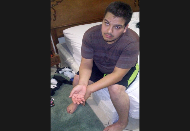 Acusándolo de que era un delincuente, lo golpearon, poniéndolo de rodillas y esposándolo además de pedirle que se agachara para que no los viera, aunque éste logró darse cuenta de que varios de ellos andaban encapuchados y que uno de ellos se quitó el chaleco para poder golpearlo, explica la víctima mientras mostraba sus muñecas marcadas por las esposas que le pudieron.