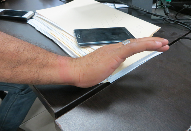 El profesionista relató que fue el jueves como a las 09:33 de la mañana que su empleado Luis Alberto Rodríguez le llamó para avisarle que los agentes federales lo llevaban a "barandilla" por no traer licencia y que el agente le dio una cachetada, cuando lo sometieron a una revisión a la camioneta Chevrolet Trail Blazer en la que viajaba.