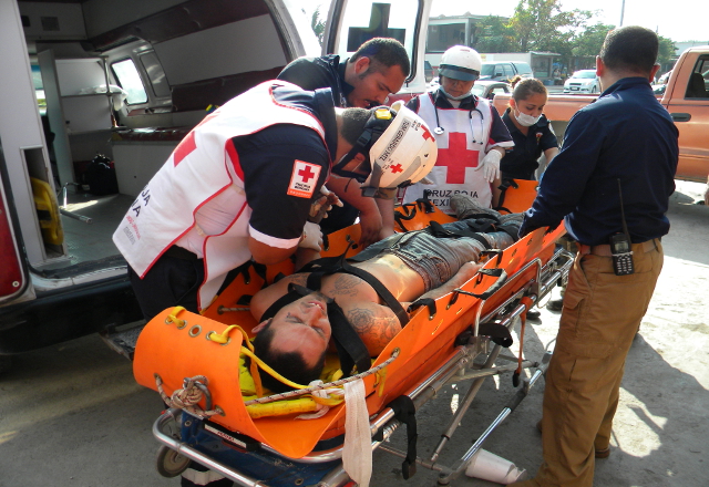De inmediato iniciaron las maniobras, empezando por brindarle los primeros auxilios, para luego colocarlo en una tabla dura, y con cuerdas atadas a la misma, lo descendieron a un camión de bomberos, para finalmente colocarlo en una camilla, y técnicos en urgencias médicas de la Cruz Roja, lo trasladaron a la sala de urgencias del Hospital General.