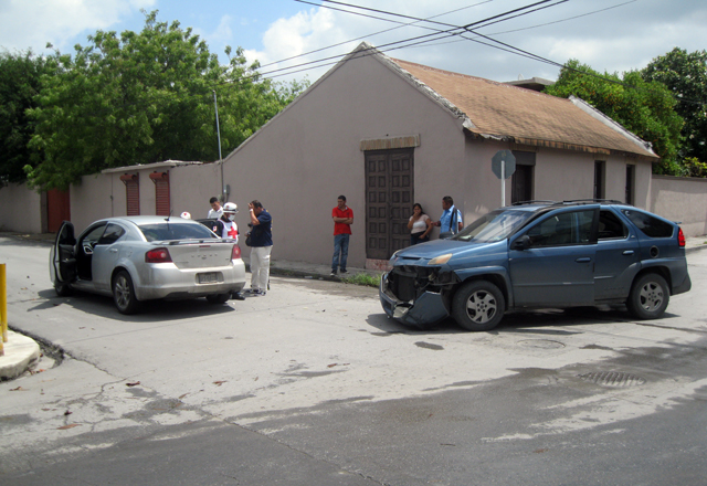Al decir de José Manuel Flores, en su automóvil circulaba al norte sobre la calle Catorce, y al ir cruzando la Bravo, fue impactado en la parte delantera derecha por el frente de la camioneta, que se "vuela" la señal de alto, al desplazarse de oriente a poniente por la calle Bravo.