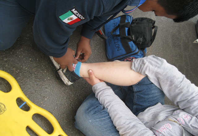 Una vez que la estabilizaron, la pusieron en una tabla rígida, y la subieron a una camilla, para finalmente trasladarla a la sala de urgencias del Hospital General "Dr. Alfredo Pumarejo".