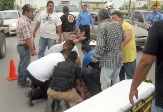 13/04/2016 - Un menor de edad que fue atropellado por una camioneta Nissan Rogue color blanco en la avenida Constituyentes frente a Plaza Patio, ingresó de emergencia al hospital del Instituto Mexicano del Seguro Social de la calle Sexta entre Mina y Ocampo, con lesiones en varias partes de su cuerpo y fracturas expuestas en una pierna.