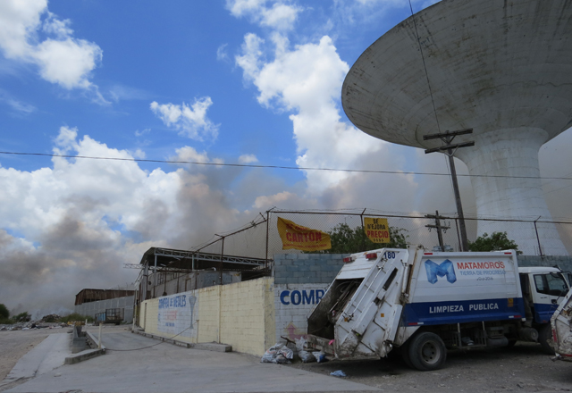 29/07/2016 - Al menos 20 colonias aledañas a la Avenida del Niño en Matamoros fueron cubiertas por la nube de humo tóxico proveniente del centro de transferencia “La Copa” el cual volvió a arder en llamas ayer ante la incapacidad de las autoridades locales por contener el incendio, mismo que redujo a cenizas una gran parte de las 1,200 toneladas de basura doméstica y desechos de manejo especial que se seguían almacenando en el lugar.