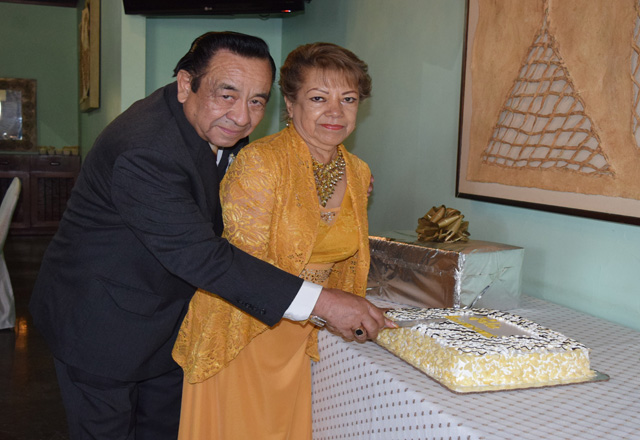 Más tarde el gran acontecimiento se festejó con una comida muy especial, teniendo como marco el salón privado del Restaurante Agave del Holiday Inn, donde nuevamente se felicitó a los novios ofreciéndose un brindis en su honor deseándoles mucha más felicidad, armonía y amor que la que se juraron en 1967 como cuando se dieron el “Sí acepto” por primera vez. Participaron como padrinos de lazo, Ing. Jorge Méndez y Sra. Valeria Pérez; anillos, Lic. Álvaro Hernández Hernández; de velación, Clarita Méndez; arras, Ing. Constantino Vite Hernández, y de pastel, Sr. Luis Enrique Silva García y Sra. Sandra Cruz de Silva.