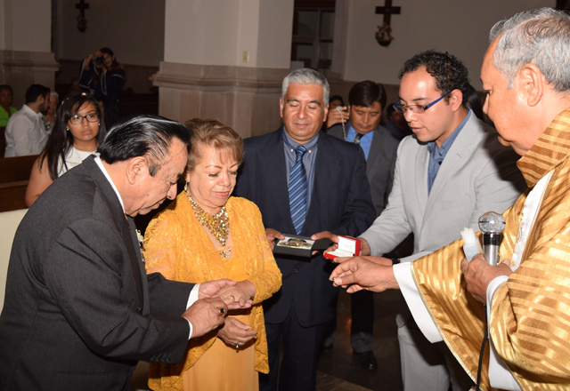Luego de que el Pbro. Pedro Contreras bendijo a este admirable matrimonio, les felicitó con gran afecto, concluyendo la ceremonia con una fuerte ovación en honor a los esposos, que les dedicaron los presentes en el sacro recinto.