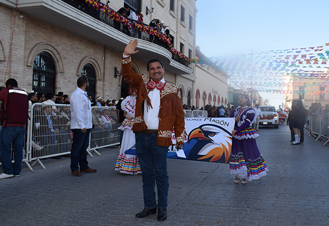 Matamoros. La Escuela Preparatoria Federal por Cooperación “Ricardo Flores Magón” participó con orgullo en el Desfile Internacional de Matamoros y Brownsville, reafirmando su compromiso con la educación y la cultura. La delegación fue encabezada por el director, Maestro Juan Alonso Castro.