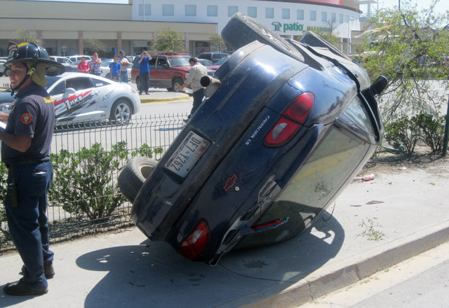 Cuando hicieron acto de presencia confirmaron el llamado de urgencia, encontrando volcado sobre la malla ciclónica del estacionamiento de Plaza Sendero, y abandonado, el automóvil Chevrolet Cavalier, modelo 2002, de color azul.
