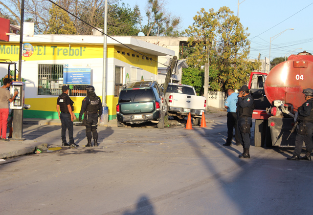 Al estar en el lugar indicado, confirmaron el reporte del accidente, encontrando como participantes, una camioneta marca Nissan Armada, incrustada contra un poste de madera, presuntamente de la empresa Teléfonos de México, el cual quedó destrozado, y una camioneta pick up, marca Ford F-150, modelo 2008, color blanco, de cuatro puertas, impactada contra la pared de una propiedad.