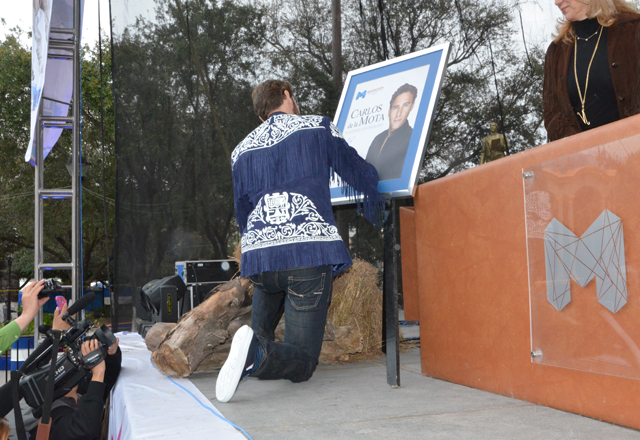 Después, siguiendo con el evento nuestra Alcaldesa le regaló los tenis oficiales de nuestra ciudad, a lo que el actor se mostró muy agradecido y se los puso ante el público, ya para terminar el evento dio el toque final, la famosa firma del libro de visitantes, al plasmar su firma comentó que por él se quedaría en Matamoros para seguir siendo consentido. El actor Carlos de la Mota se tomó las últimas fotografías con su público para después dirigirse a nuestra Presidencia Municipal, no sin antes autografiar su portada enmarcada de las Fiestas Mexicanas 2015.