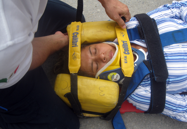 Una vez que la estabilizaron, ante las lesiones y probables fracturas que le resultaron en el cuerpo, la subieron a la ambulancia de la benemérita institución, y la trasladaron a la sala de urgencias del Hospital General.