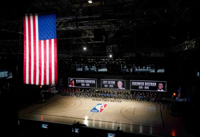 Tras haber suspendido el encuentro como forma de protesta contra el racismo, en la previa de Milwaukee Bucks vs Orlando Magic, se rindió un homenaje al actor estadunidense Chadwick Boseman, Lute Olso