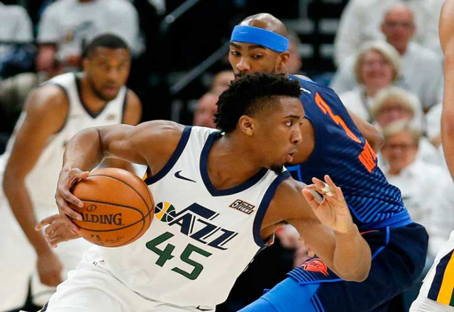 24/04/18.- Donovan Mitchell anotó 33 puntos para guiar al Jazz a una victoria el lunes por 113-96 sobre el Thunder en el Juego 4 de la primera ronda de playoffs de la NBA. Utah tiene una ventaja de 3
