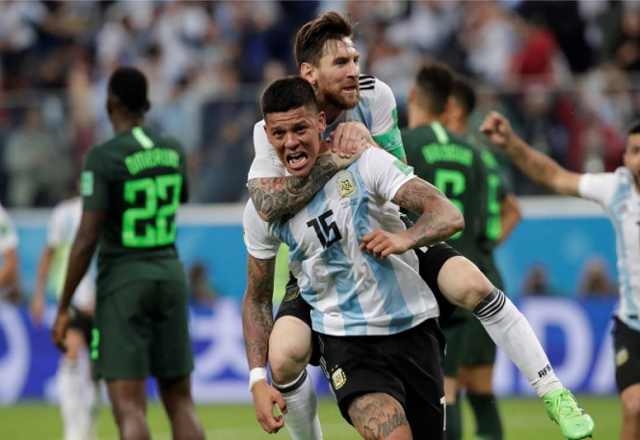 26/06/18.- Un gol del defensor argentino Marcos Rojo en el minuto 87 del partido dio la victoria a Argentina contra Nigeria y la clasificación a los octavos de final del Mundial de Rusia 2018, tras e