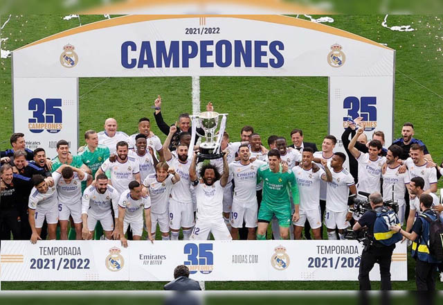 El Real Madrid de Carlo Ancelotti ganó este sábado su título 35 como campeón de La Liga española de su historia, tras golear 4-0 al Espanyol a cuatro jornadas para el final de LaLiga, lo que hace