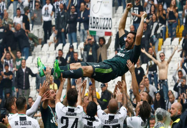 19/05/18.- Gianluigi Buffon puso a todos de pie, hubo lágrimas en algunos rostros de aficionados, todos le aplaudieron y él agradeció tales muestras de cariño con los brazos en alto en su despedid