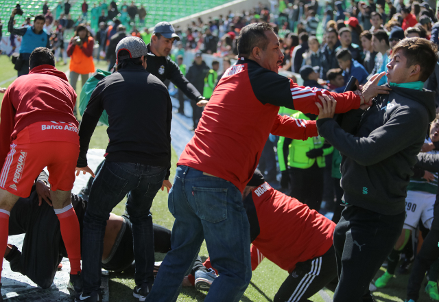 09/12/17.- El partido de vuelta de la Final Sub-20 entre Santos y Atlas terminó en una batalla campal en la cancha del Estadio Corona, ante la presencia de Enrique Bonilla, presidente de la Liga MX,