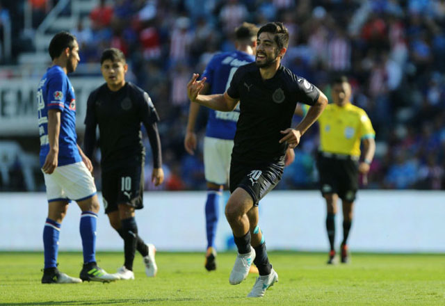 30/07/2017 CIUDAD DE MÉXICO.- Un golazo de Rodolfo Pizarro dio el empate a Chivas 1-1 ante Cruz Azul, encuentro donde ambas escuadras terminaron con 10 hombres. Rafael Baca abrió el marcador al minu