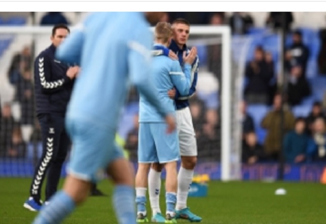 Un emotivo abrazo entre los ucranianos Vitaly Mykolenko, del Everton, y Oleksandr Zinchenko, del Manchester City, reflejó el dolor de la guerra, en el choque entre ambos equipos disputado en Goodison
