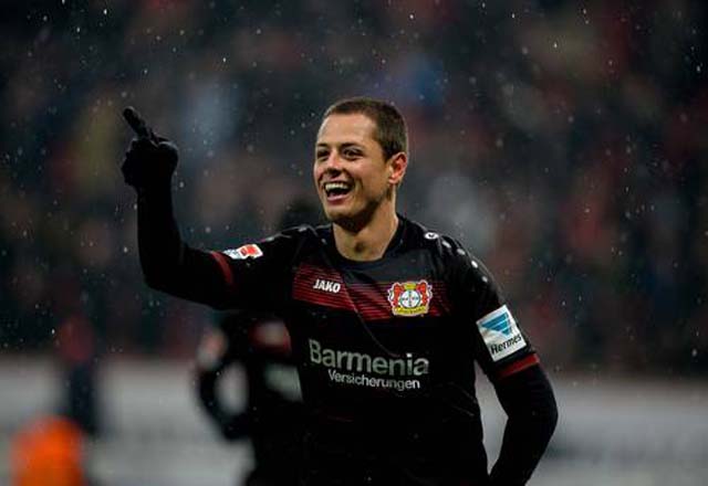 12/02/2017 Berlín. Con un doblete Javier Chicharito Hernández rubricó su rencuentro con el gol al marcar por segundo juego consecutivo y fue pieza clave para la victoria 3-0 del Bayer Leverkusen so