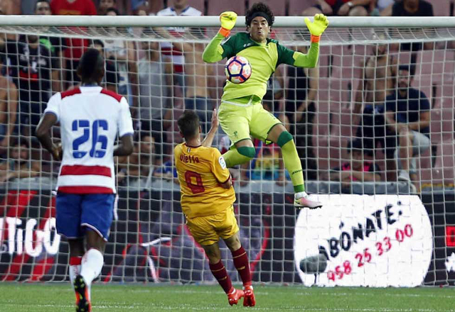 Granada,2/08/16.- El portero mexicano, Guillermo Ochoa, disputó su primer partido completo con su nuevo equipo, Granada CF, luego de que la semana pasada se firmó su préstamo al cuadro andaluz. Gra
