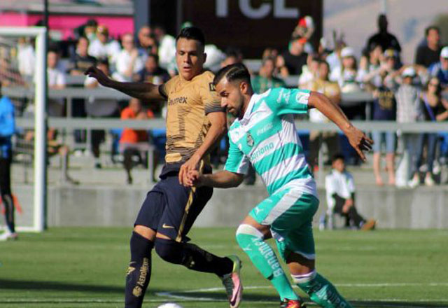 03/07/2016 SAN JOSÉ, Estados Unidos.- Santos Laguna superó 2-1 a Pumas de la UNAM, dentro del torneo amistoso Copa Socio MX, que sirve de preparación para el Torneo Apertura 2016 de la Liga MX de f