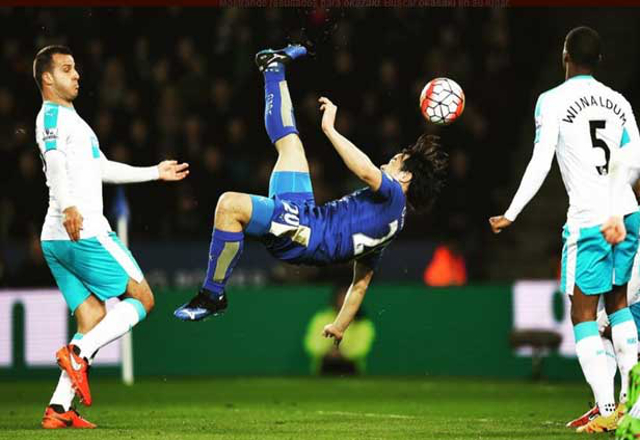 Inglaterra,14/03/16.- Con un gol de tijera de Shinji Okazaki, Leicester venció el lunes 1-0 a Newcastle para consolidarse como líder de la Liga Premier inglesa. La espectacular definición del delan