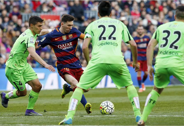 Barcelona,12/03/16.- Lionel Messi volvió a dar una demostración de supremacía y dirigió con maestría una nueva goleada del Barcelona el sábado, 6-0 sobre el visitante Getafe, para alargar a 37 l