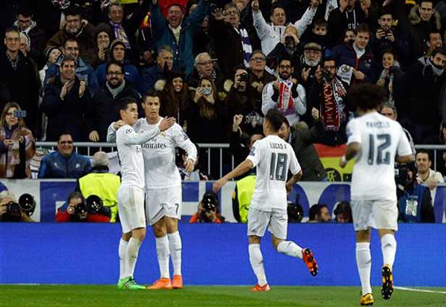 Madrid,8/03/16.- Real Madrid con tantos de Cristiano Ronaldo y James Rodríguez superó por 2-0 a la Roma en el Estadio Santiago Bernabéu y tras un 4-0 en el global, clasificó a los cuartos de final